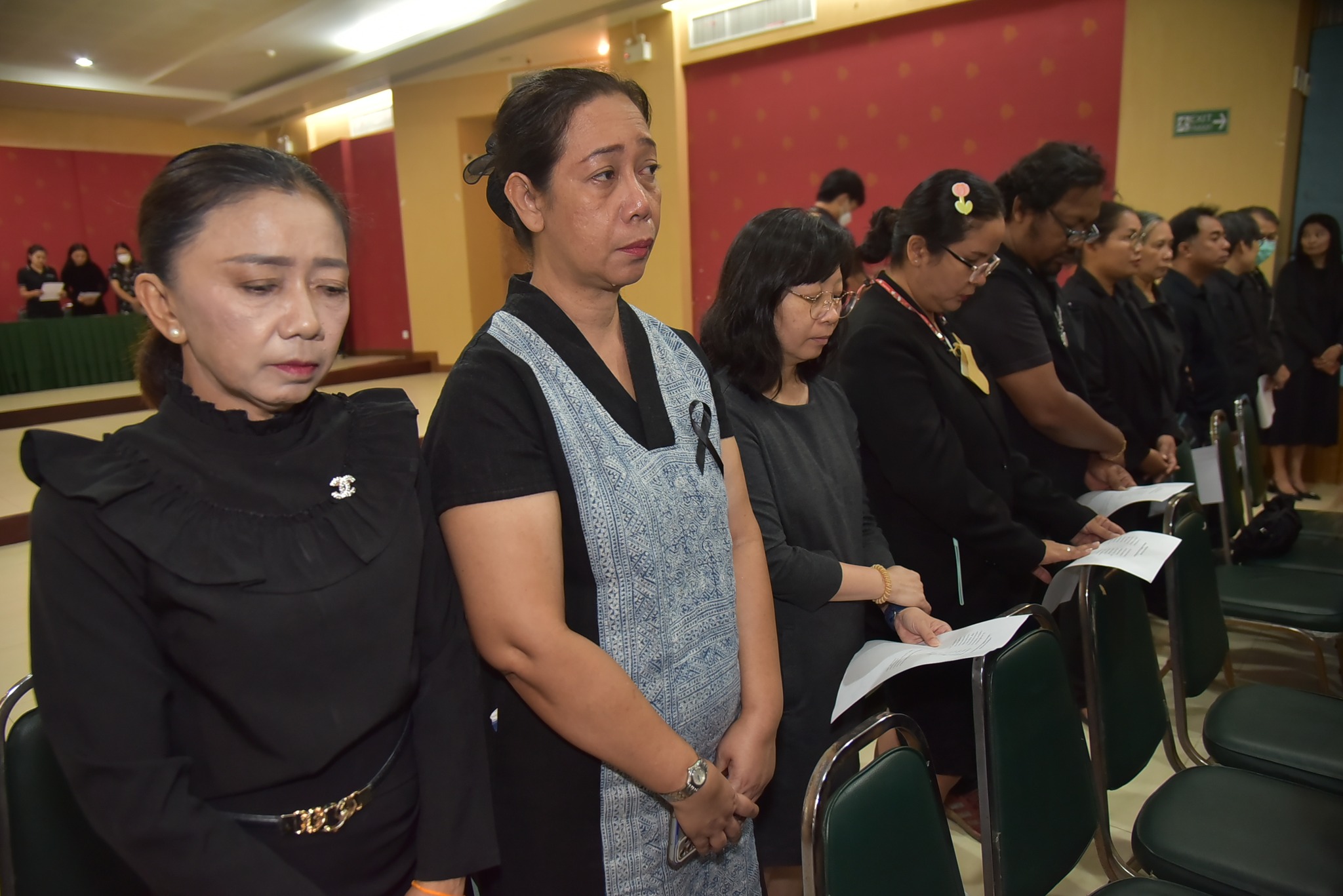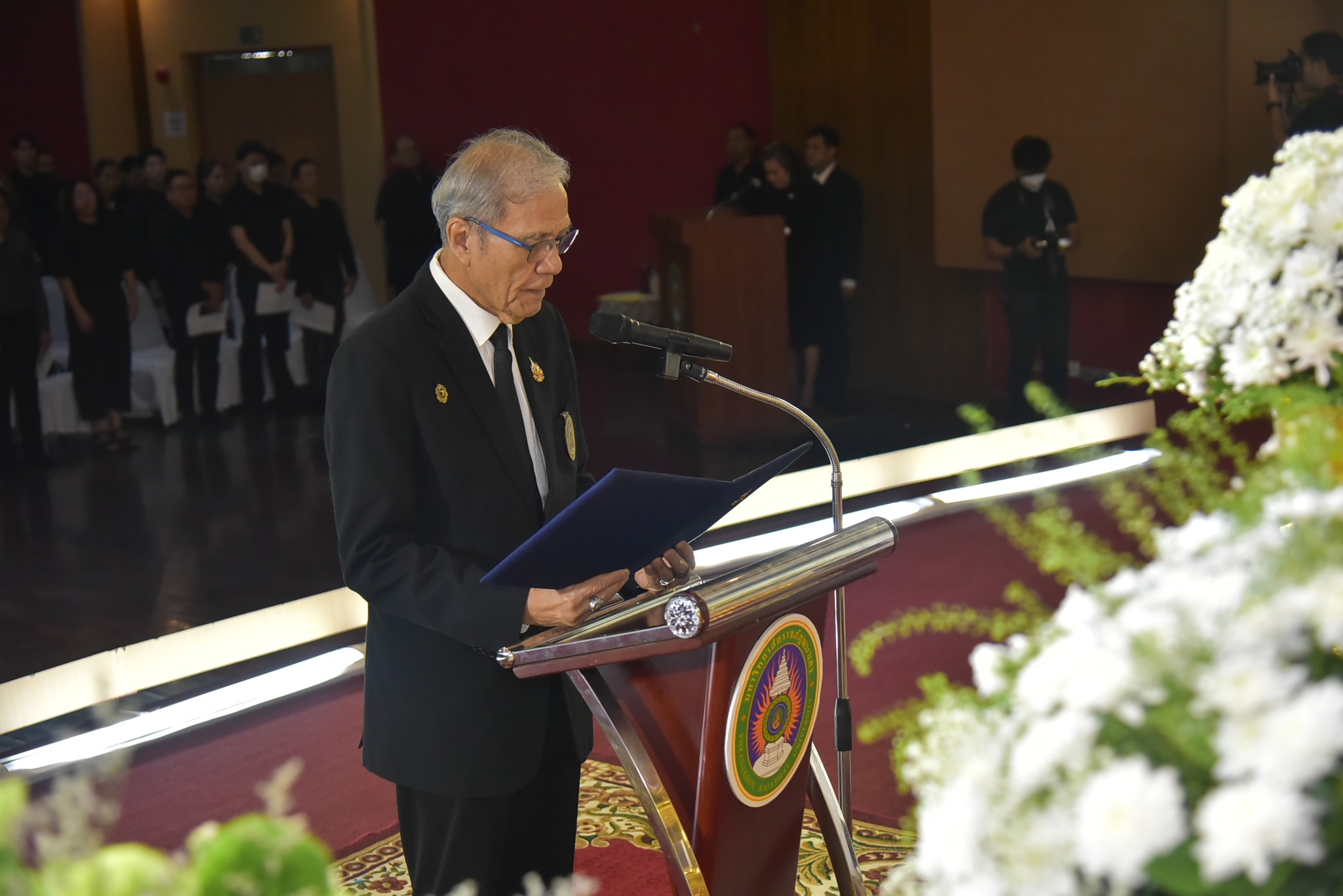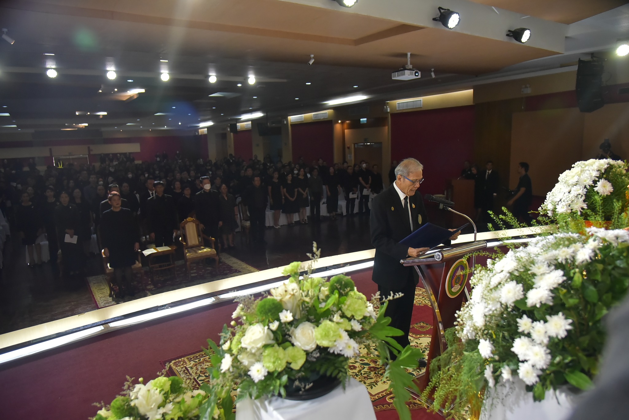 ภายในพิธีมีคณะผู้บริหาร คณาจารย์ และบุคลากรของมหาวิทยาลัยร่วมกันถวายความอาลัยและ